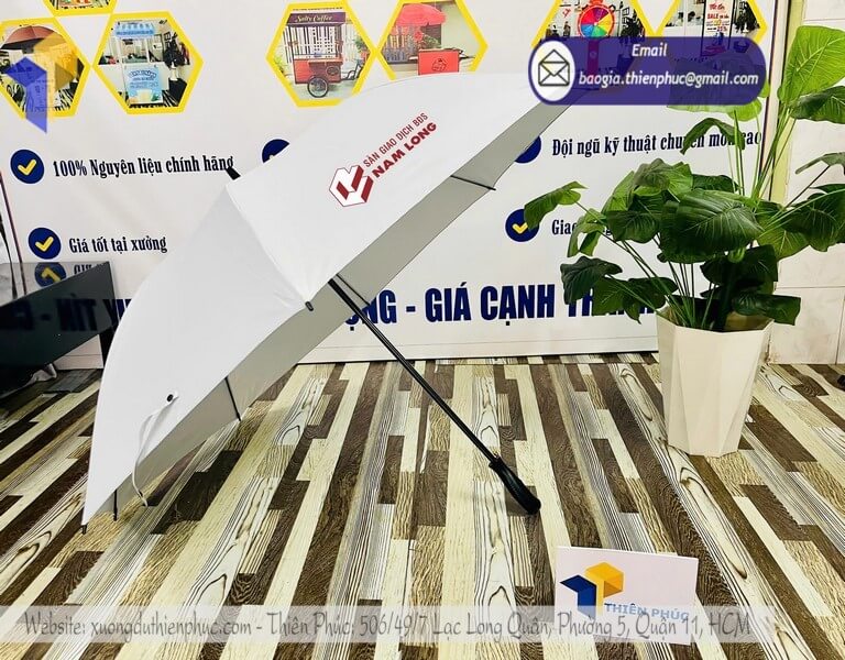 Một chiếc ô dù cầm tay được in logo không chỉ có giá trị sử dụng mà còn thể hiện sự tinh tế của doanh nghiệp khi tặng khách hàng, đối tác. Đây chính là cách “ghi điểm” bền vững, tăng mức độ trung thành của khách hàng.